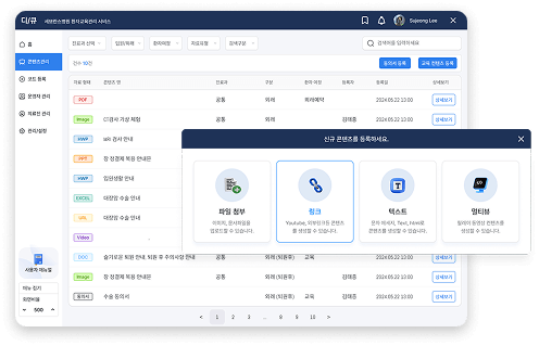 여러 종류의 자료 유형을 등록하여 관리자가 교육자료를 관리합니다.